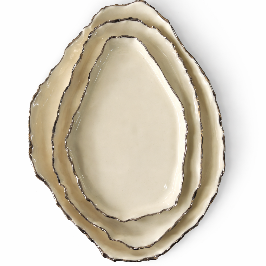 Serving trays elongated ruff rim - Silver